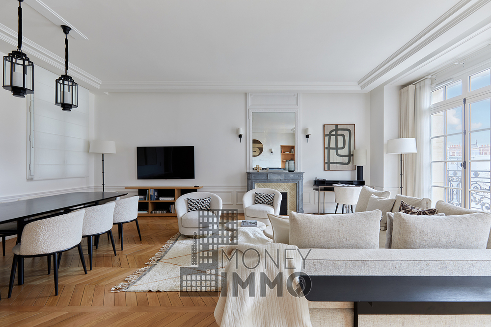 St Dominique - Au cœur du 7ème arrondissement, au 4ème étage d'un immeuble entièrement rénové, cet appartement exceptionnel d'une surface de 155m2, se composant d'une entrée, d'un séjour lumineux avec cuisine américaine contemporaine, d'une suite parentale avec salle de bain et dressing, deux chambres et deux salles de bains attenants vous offre un cadre de vie luxueux avec des prestations haut de gamme.