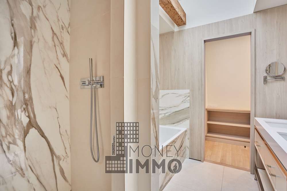 TRIANGLE D’OR – Au 6ᵉ étage d’un immeuble de très haut standing avec conciergerie 24h/24, piscine, sauna, hammam et salle de sport, superbe appartement type loft meublé de 65 m², offrant des prestations haut de gamme.
