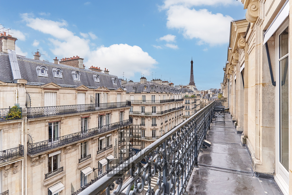 Il dispose également d’un balcon filant offrant une vue imprenable sur la Tour Eiffel.